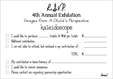 Every summer the kids of Kaleidoscope engage in a wide variety of fun and educational art classes and workshops. By the time fall rolls around, an impressive body of work has been built and some of it goes up for auction at Kaleidoscope's annual "Kid Art Gallery & Auction" benefit. This highly anticipated downtown show features paintings, photographs and mixed media pieces created by the talented kids of Kaleidoscope. Their artwork is professionally framed and made available to the highest bidder. The young artists receive commissions for their work and they are always super excited to share their inspiration with their supporters at the auction. For five years (2006 to 2010), I was privileged to create the poster, invitation and support materials for these terrific events.