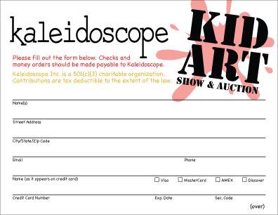 Every summer the kids of Kaleidoscope engage in a wide variety of fun and educational art classes and workshops. By the time fall rolls around, an impressive body of work has been built and some of it goes up for auction at Kaleidoscope's annual "Kid Art Gallery & Auction" benefit. This highly anticipated downtown show features paintings, photographs and mixed media pieces created by the talented kids of Kaleidoscope. Their artwork is professionally framed and made available to the highest bidder. The young artists receive commissions for their work and they are always super excited to share their inspiration with their supporters at the auction. For five years (2006 to 2010), I was privileged to create the poster, invitation and support materials for these terrific events.