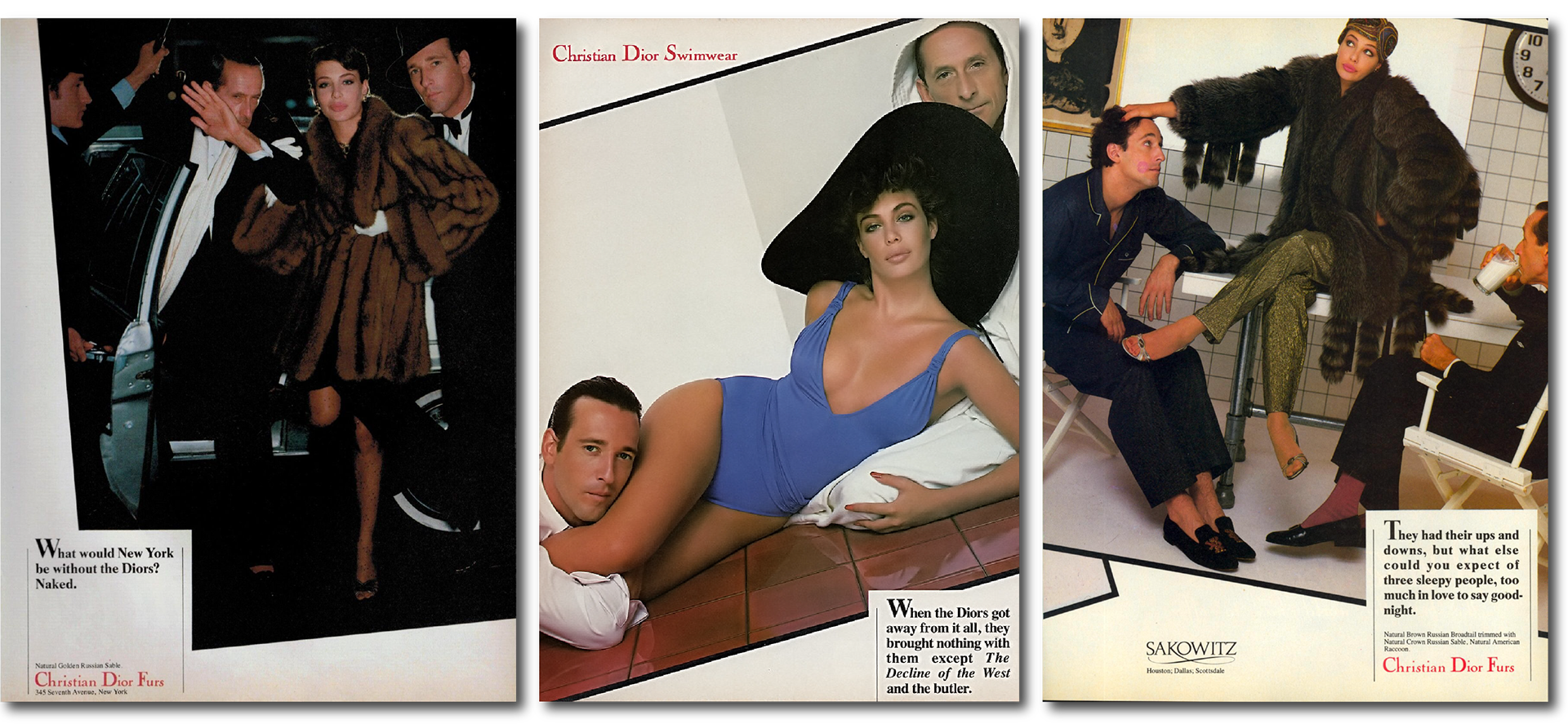 The ads featured the glamorous trio in various suggestive scenarios that chronicled their debaucherous adventures in taut photography and minimal seductive copy. Relying heavily on implication and innuendo, the ads were like a magnet that totally sucked me in. Every month I would eagerly look forward to seeing what roguishness they would be up to as they cavorted across the pages of Vanity Fair and Vogue.
